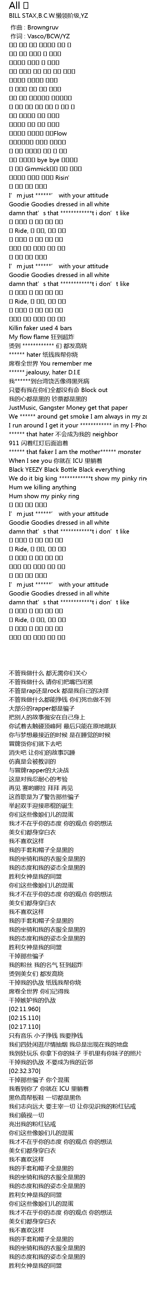 | [00:01.00] | 作词 : Vasco/BCW/YZ |