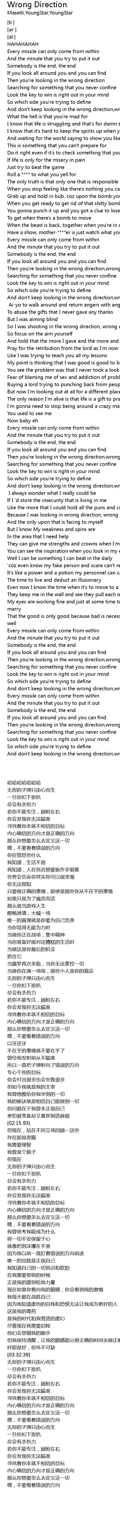 | [00:22.19] | Every missile can only come from within |