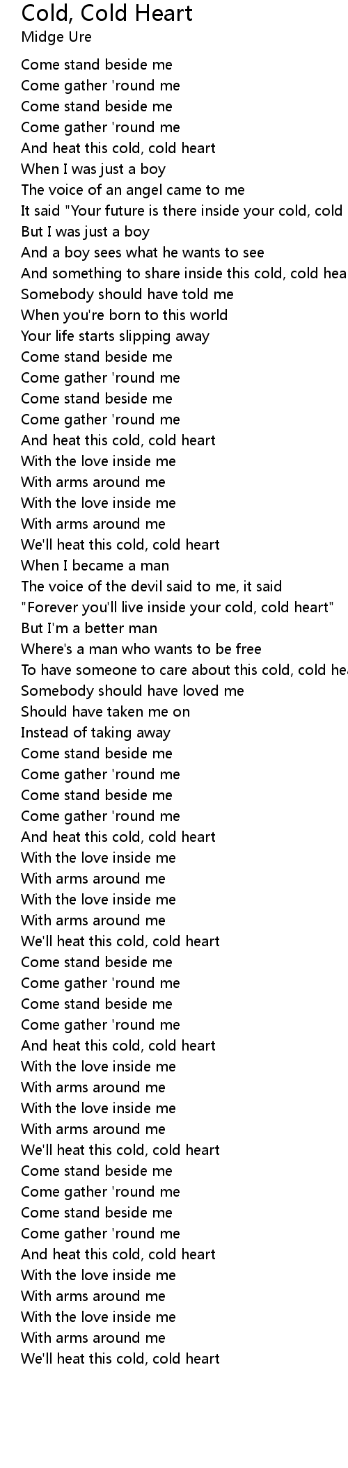 | "Forever you'll live inside your cold, cold heart" | |