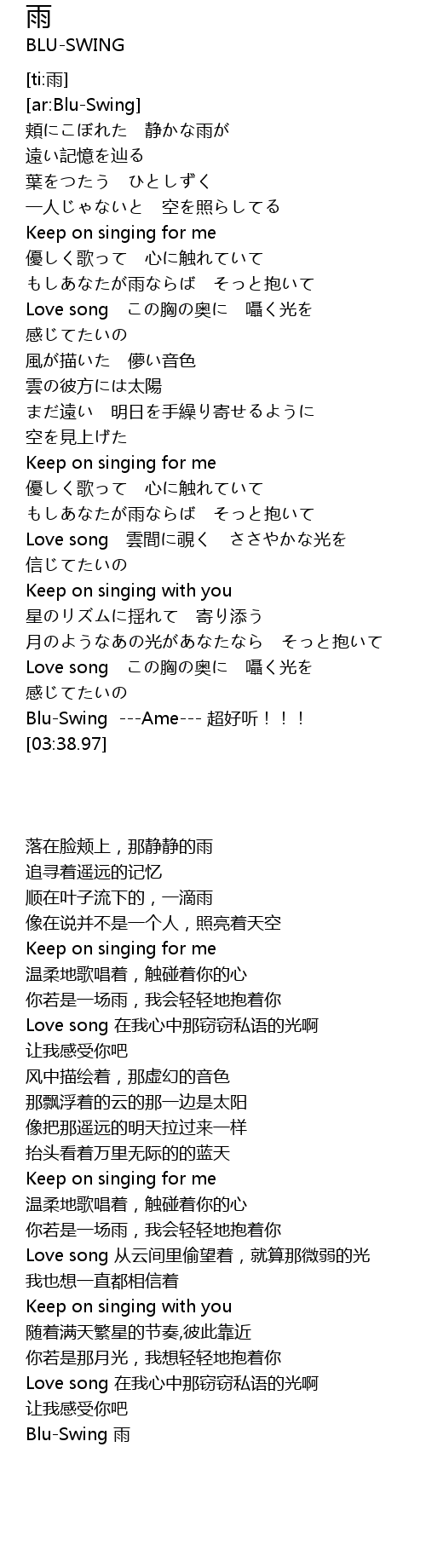 | [03:31.69] | Blu-Swing ---Ame--- 超好听!!! |
