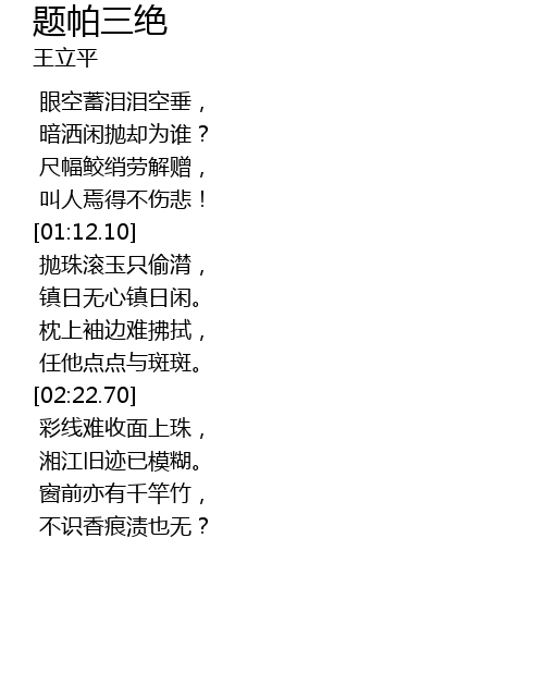 | [02:45.37] | 湘江旧迹已模糊。 |
