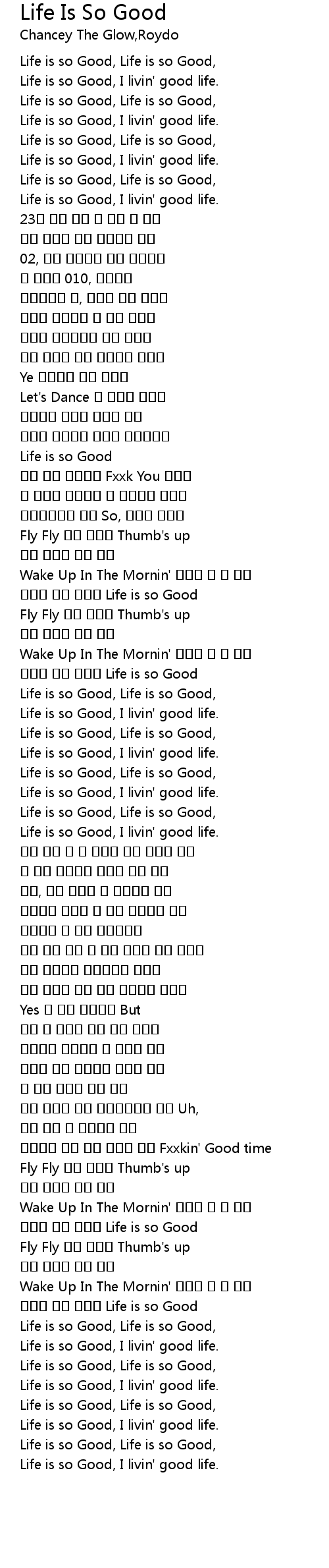 | [00:17.92] | Life is so Good, I livin' good life. |