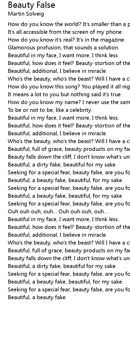 Beautiful, a beauty fake, beautiful, for my sake. |