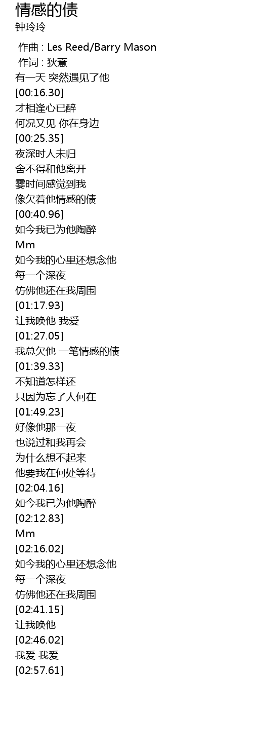 | [01:29.29] | 我总欠他 一笔情感的债 |