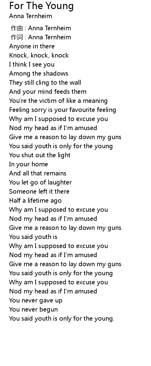 | [00:00.00] | 作曲 : Anna Ternheim |