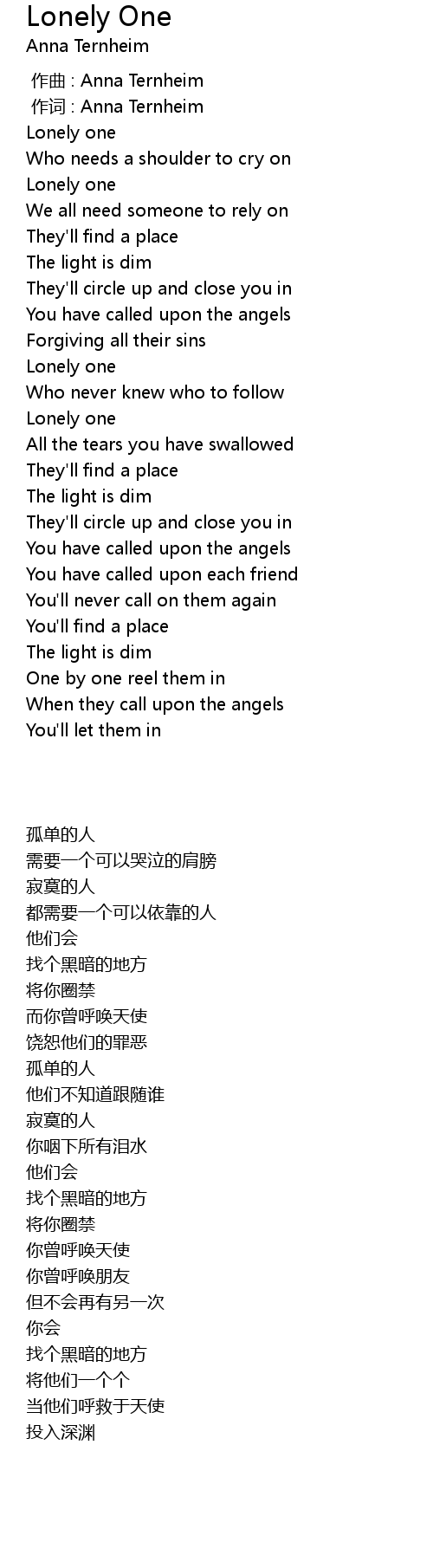 | [00:00.00] | 作曲 : Anna Ternheim |