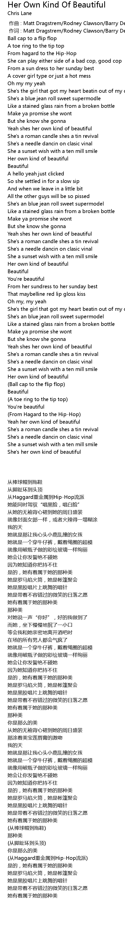 | [00:43.47] | Yeah shes her own kind of beautiful |