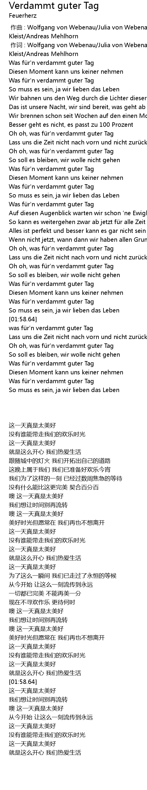 | [01:51.34] | Was fü r' n verdammt guter Tag |