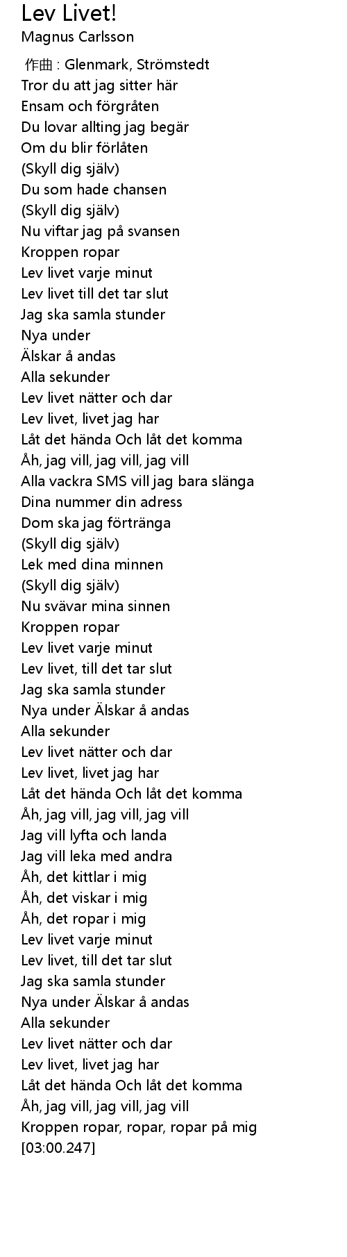 | [02:45.230] | Lev livet, livet jag har |