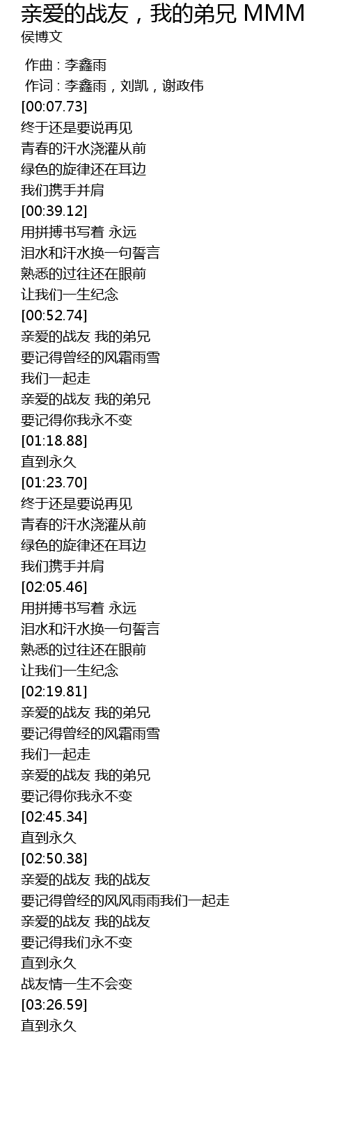| [03:03.61] | 亲爱的战友 我的战友 |