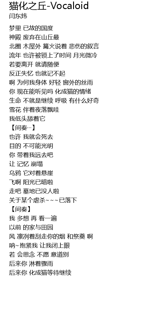 | [01:24.67] | 你 现在能听见吗 化成猫的情绪 |