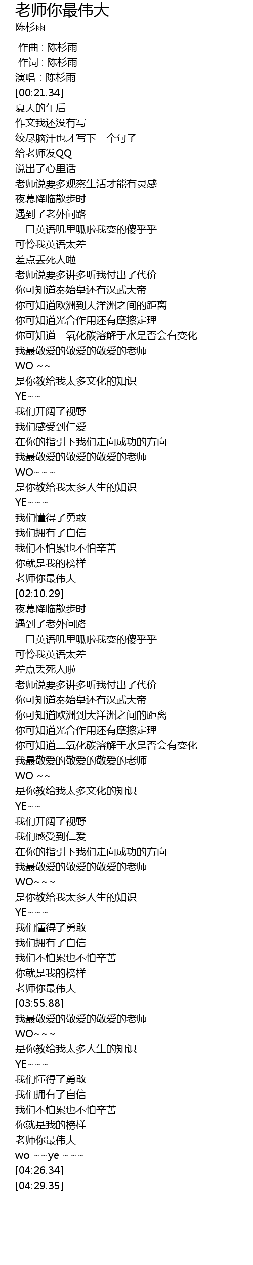 | [04:18.48] | 老师你最伟大 |