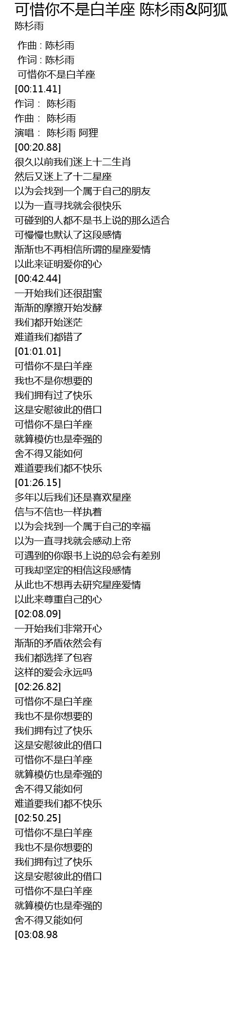 | [03:00.76] | kě xī nǐ bú shì bái yáng zuò |