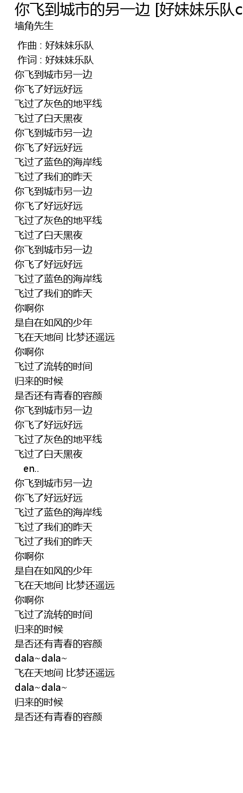 | [00:01.00] | 作词 : 好妹妹乐队 |