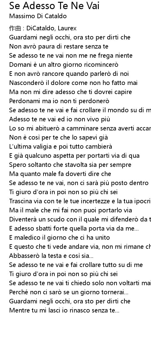 | Se adesso te ne vai ti chiedo solo non voltarti mai | |