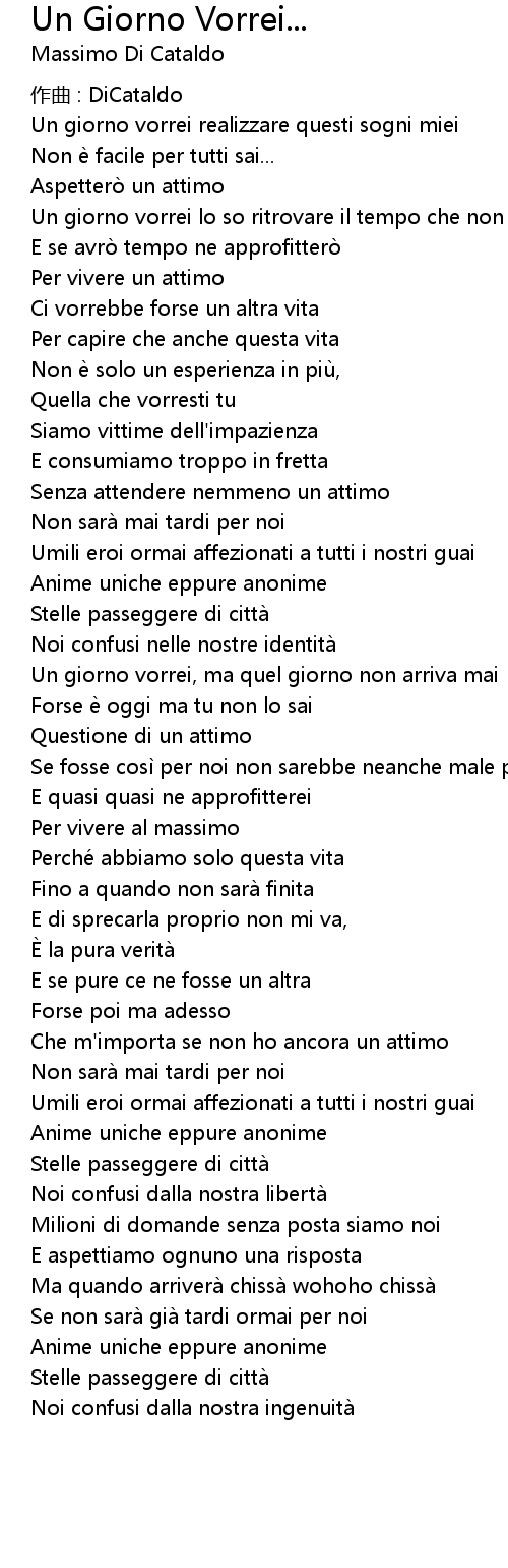 | Un giorno vorrei lo so ritrovare il tempo che non ho | |