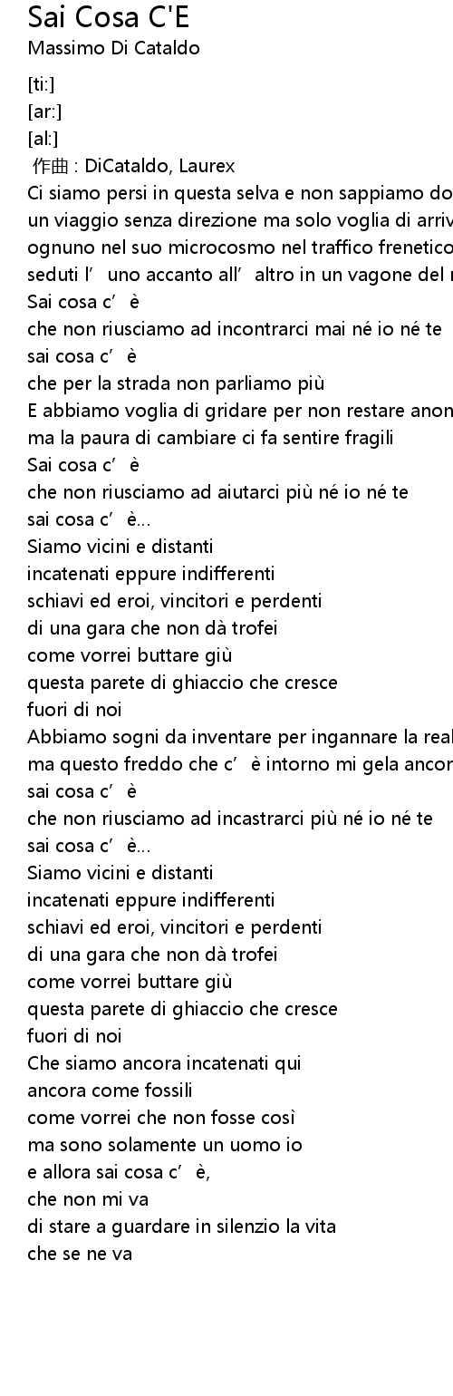 | [02:36.31] | ma questo freddo che c'è intorno mi gela ancora l' anima |