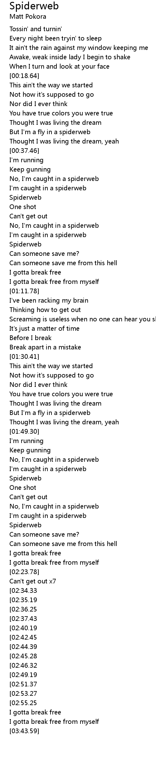 But I'm a fly in a spiderweb |