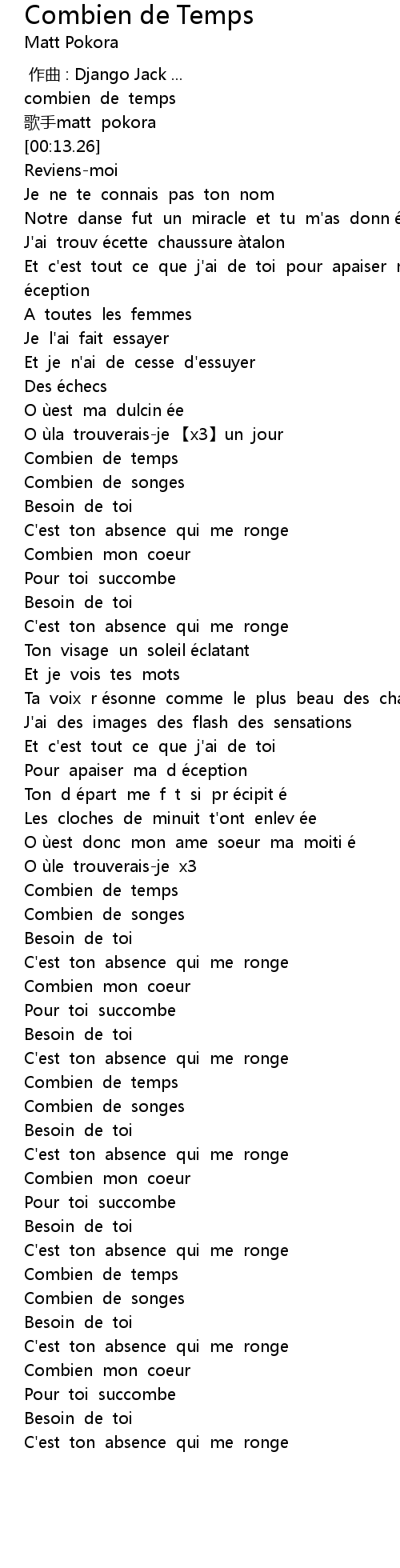 | [01:23.27] | Et c'est tout ce que j'ai de toi |