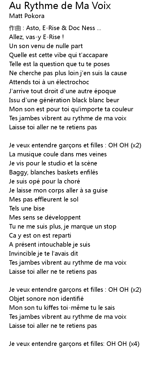 | Je veux entendre garçons et filles : OH OH (x2) | |
