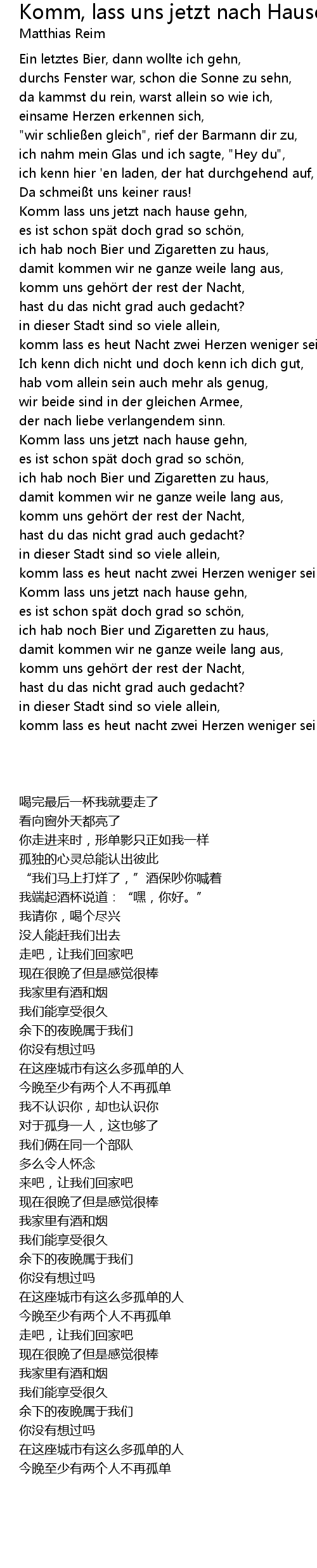 | [00:56] | Komm lass uns jetzt nach hause gehn, |