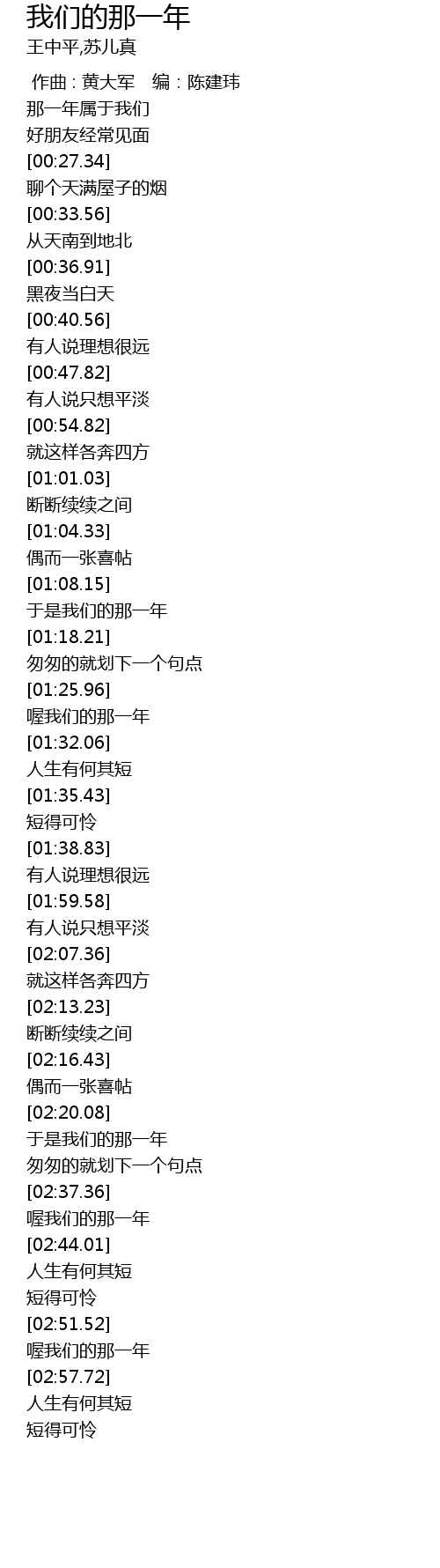 | [00:00.00] | 作曲 : 黄大军 编:陈建玮 |