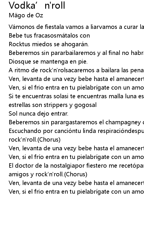 | Escuchando por cancióntu linda respiracióndespues sigue el rock'n'roll.(Chorus) | |