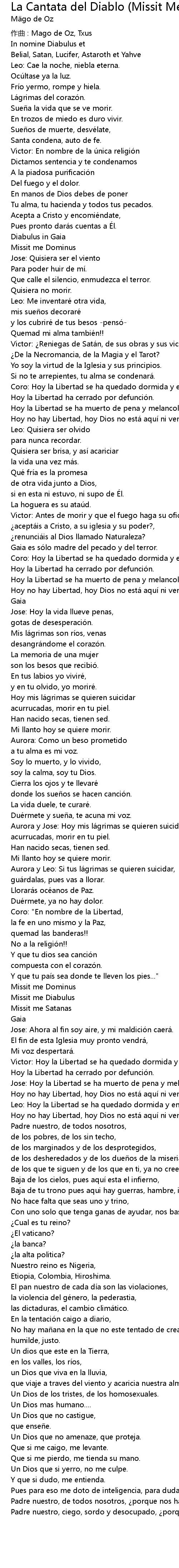 | Song | La Cantata del Diablo (Missit Me Dominus) |