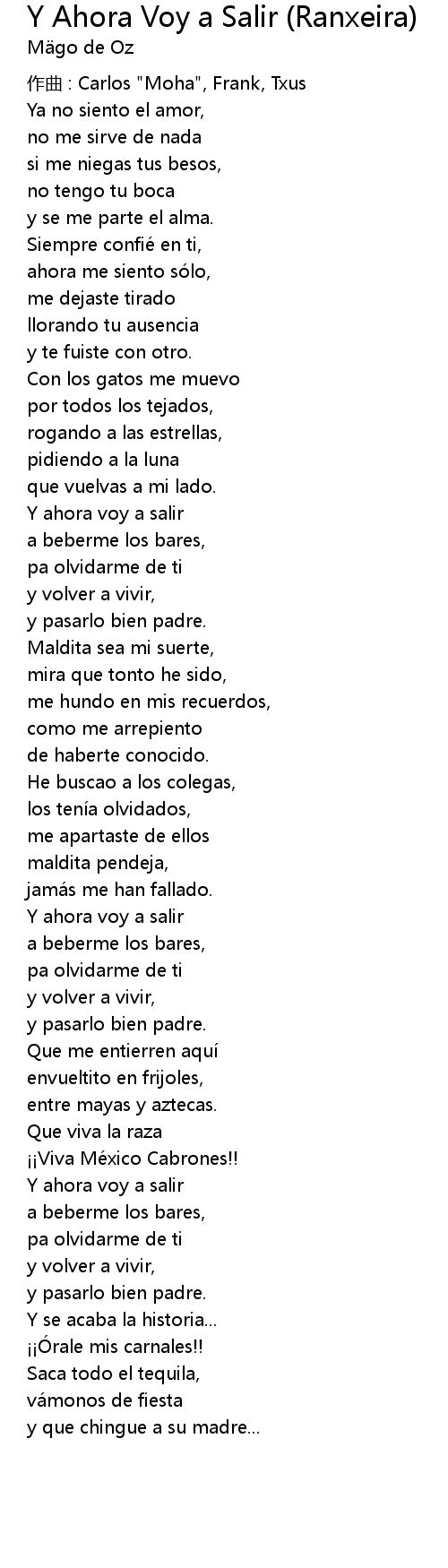 | Song | Y Ahora Voy a Salir (Ranxeira) |