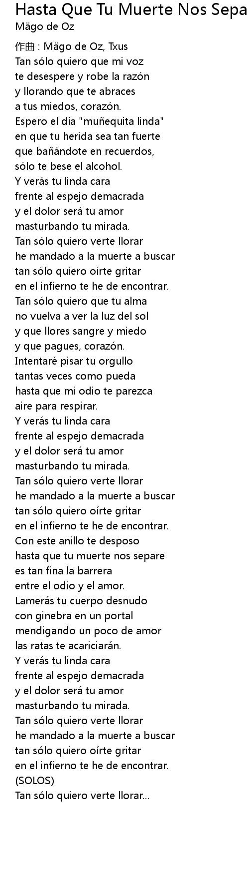 | Song | Hasta Que Tu Muerte Nos Separe |