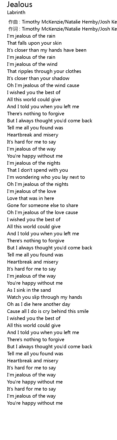 | [02:33.13] | Oh I' m jealous of the love cause |