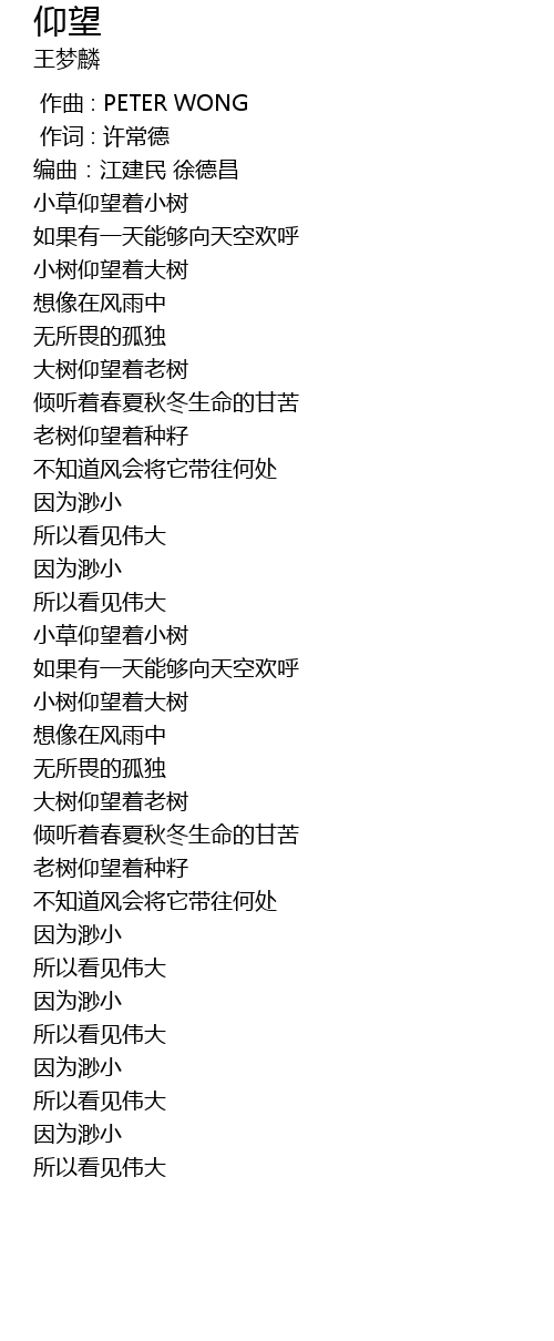 | [00:15.16] | xiǎo cǎo yǎng wàng zhe xiǎo shù |