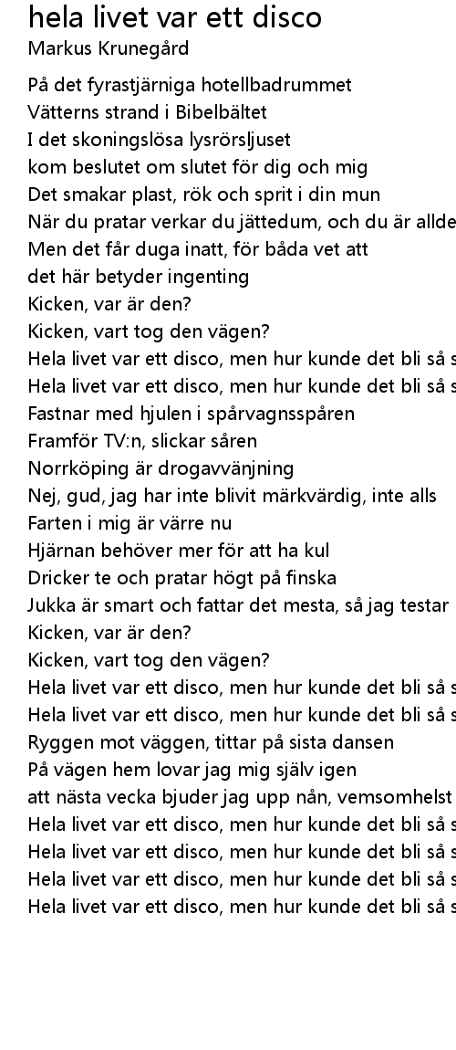 | Hela livet var ett disco, men hur kunde det bli s sv rt | |
