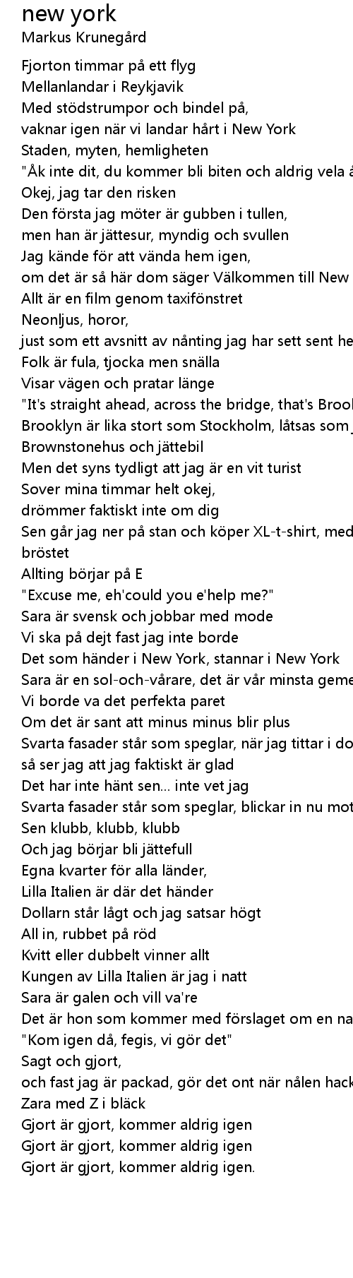 | Brooklyn är lika stort som Stockholm, låtsas som jag är en av dom | |