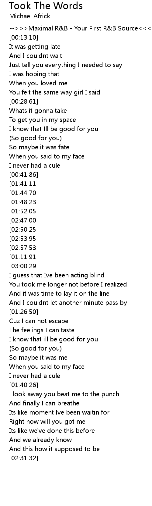 | [03:08.60][02:53.95][02:03.14][01:04.75] |