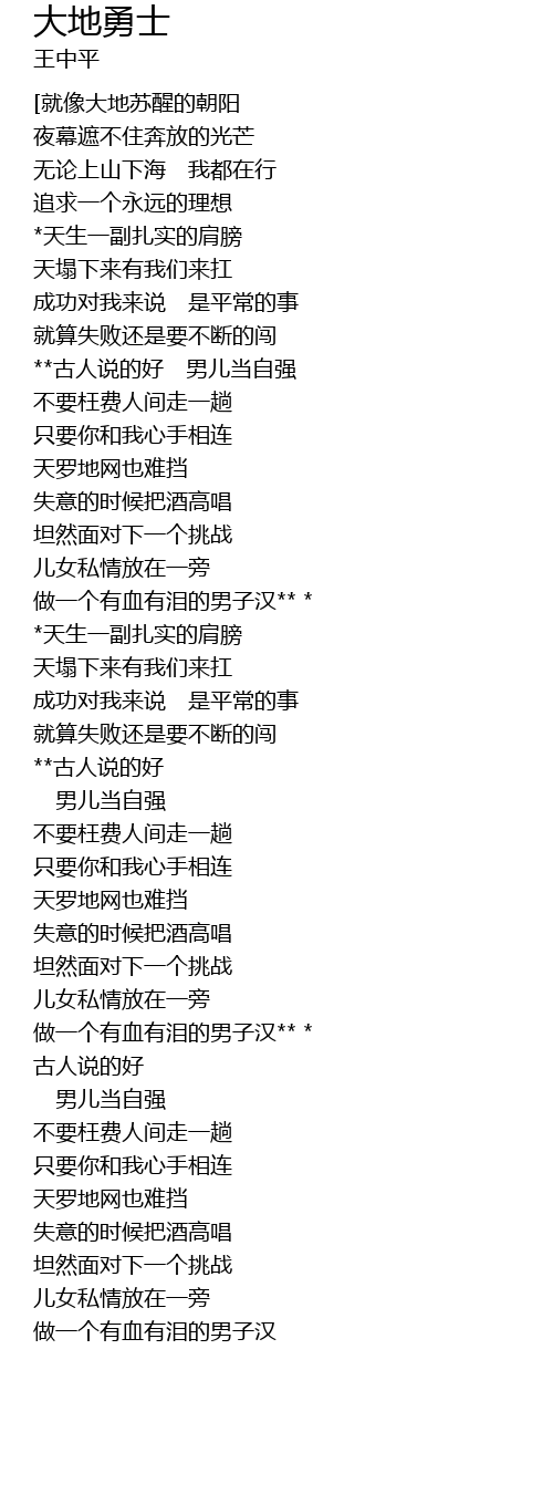 | [01:35.01] | 做一个有血有泪的男子汉** * |