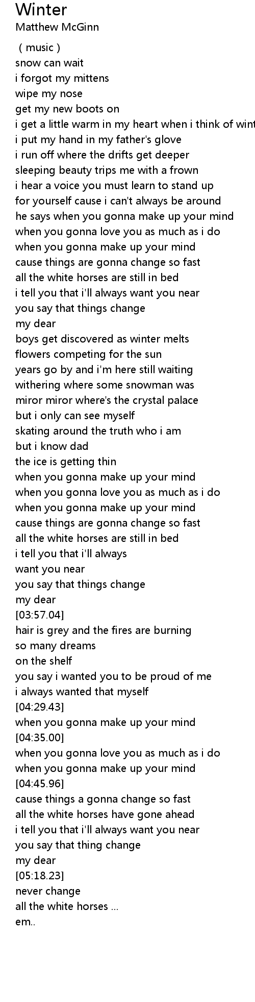 | [00:38.87] | i get a little warm in my heart when i think of winter |