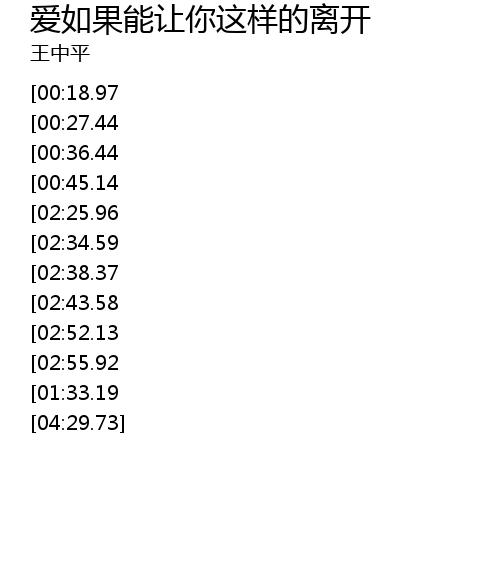 | [03:04.44][02:25.96][00:53.54] | ài rú guǒ néng ràng nǐ zhè yàng de lí kāi |