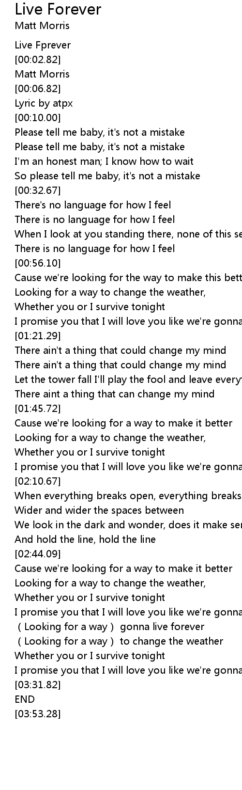 | [03:02.02] | I promise you that I will love you like we' re gonna live forever |