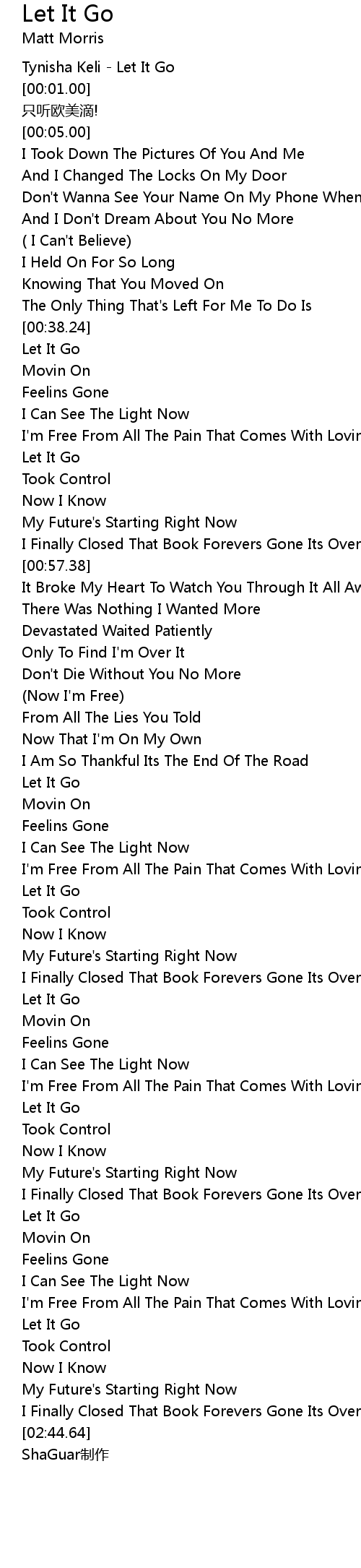 | [00:00.00] | Tynisha Keli - Let It Go |