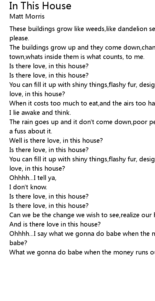 You can fill it up with shiny things,flashy fur, designer jeans,but is there love, in this house? |