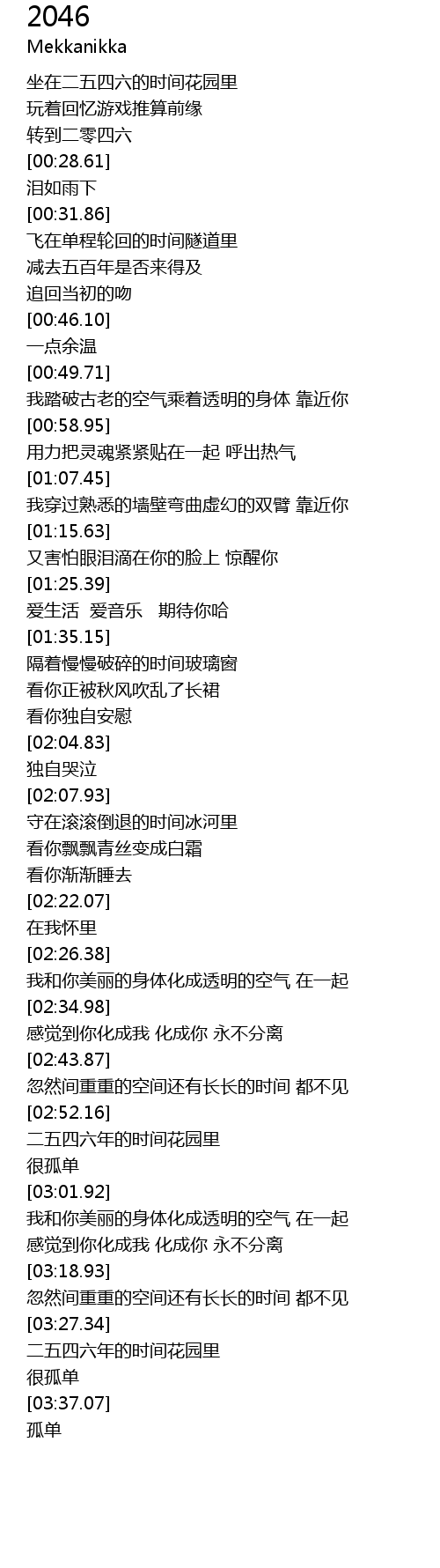 | [03:28.54] | 二五四六年的时间花园里 |