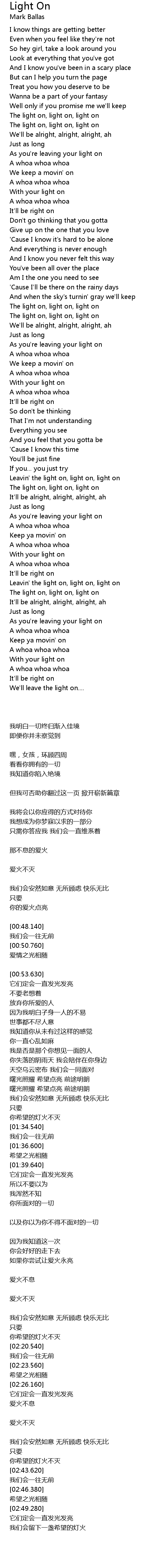 Light On Lyrics