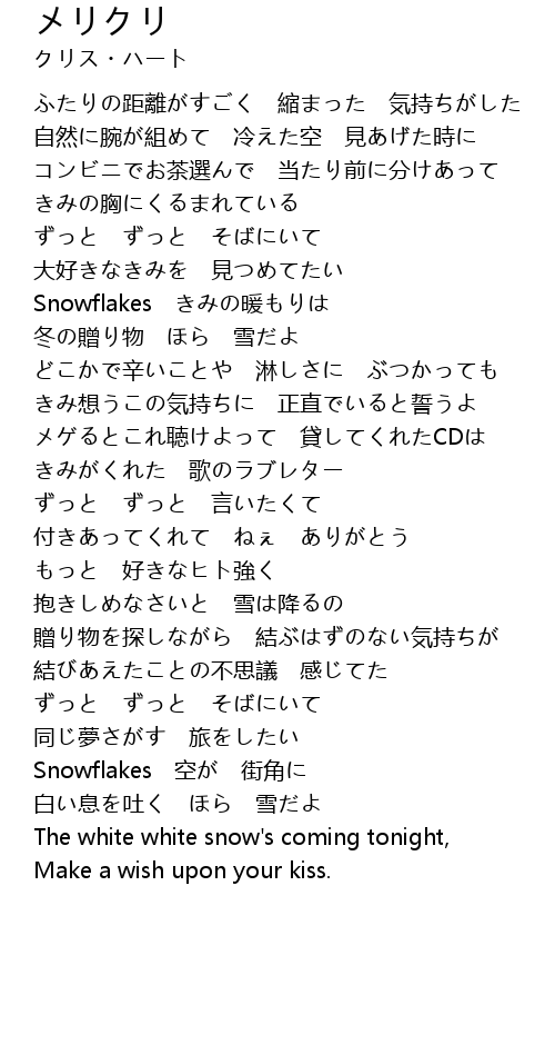 | [01:28.68] | Snowflakes きみの暖もりは |