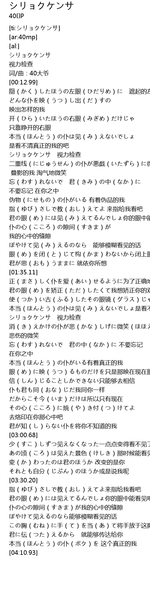 | [02:01.01] | シリョクケンサ 视力检查 |