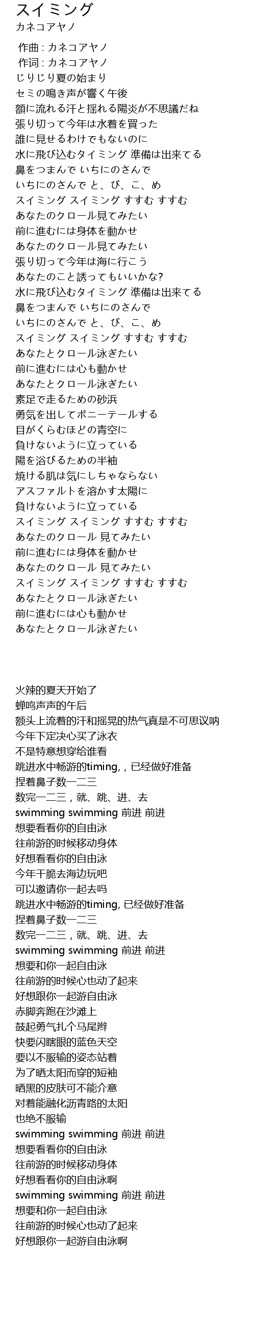 | [02:03.000] | スイミング スイミング すすむ すすむ |