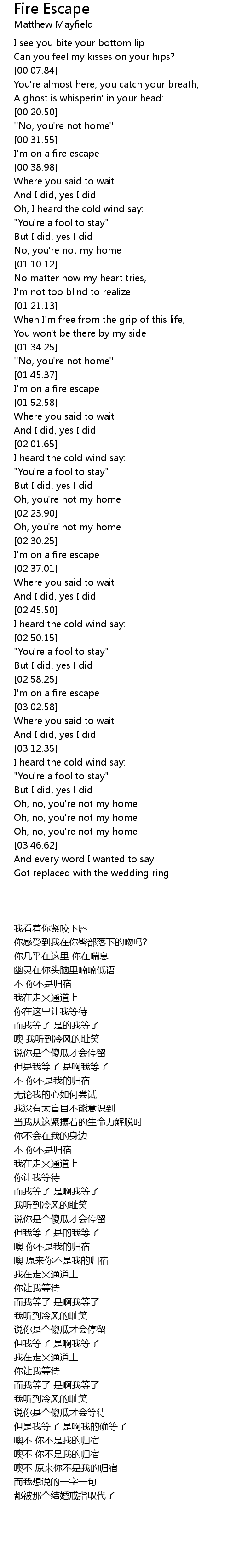 I'm on a fire escape |