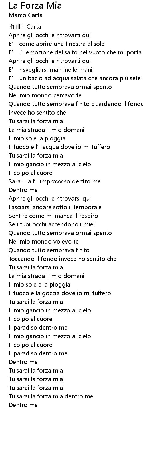 | [03:25.00] | Tu sarai la forza mia dentro me |