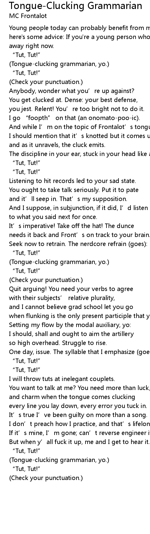 | And while I' m on the topic of Frontalot' s tongue, | |