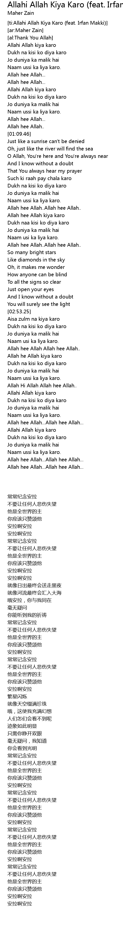 [ti:Allahi Allah Kiya Karo (feat. Irfan Makki)] |